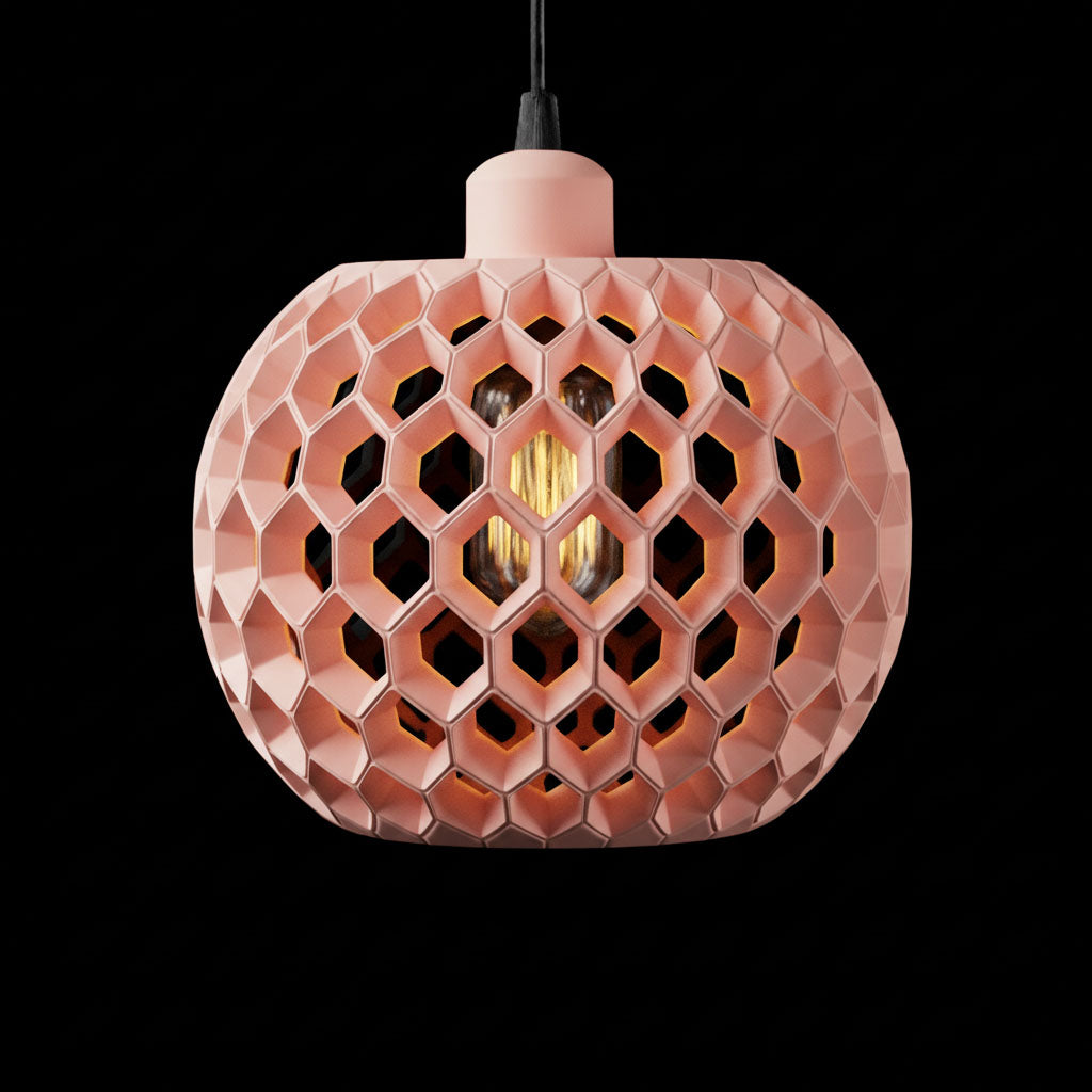 Inspired by the precision of nature, EcoHex is a striking 3D-printed pendant shade featuring a bold hexagonal structure that casts dynamic light patterns across any space. Its intricate honeycomb design not only enhances illumination but also adds a modern, architectural touch to your decor.